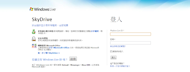 Windows Live SkyDrive 是由微軟提供的網路硬碟服務,無流量限制,需要有 Windows Live ID 就能登入使用。Windows Live SkyDrive 可隨時隨地透過網路連線來存取網路硬碟內的檔案,且提供的簡易檔案分享功能,讓使用者可以公開來分享檔案,若與MSN ( Windows Live Messenger ) 進行結合,更可指定許可的聯絡人才可以看見分享中的檔案。另一個最重要的就是對 Office 文件的支援,可以線上直接新增編輯 Office 文件。