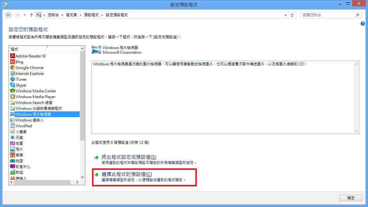 底下是變更系統預設程式的方法,以看圖程式為例,操作步驟如下: