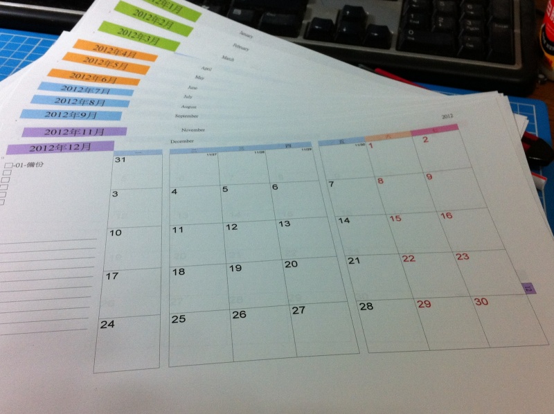弄了好幾晚,有關 Month Plan 這部分終於可以印出,裁邊,完成,就只差打孔了。