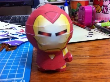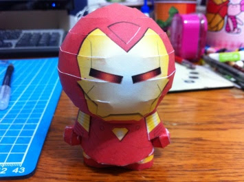 小孩一看到就說很像章魚,完成後,真的非常像,章魚鋼鐵人誕生了....採用噴墨印表紙,彩色噴墨列印,在貼在另一張紙上增加厚度,但手部好像太厚了,誤差很大。