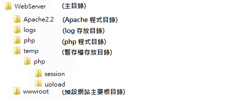 打算仿造IIS將相關程式放在同一目錄底下,以下是我規劃的目錄結構:
