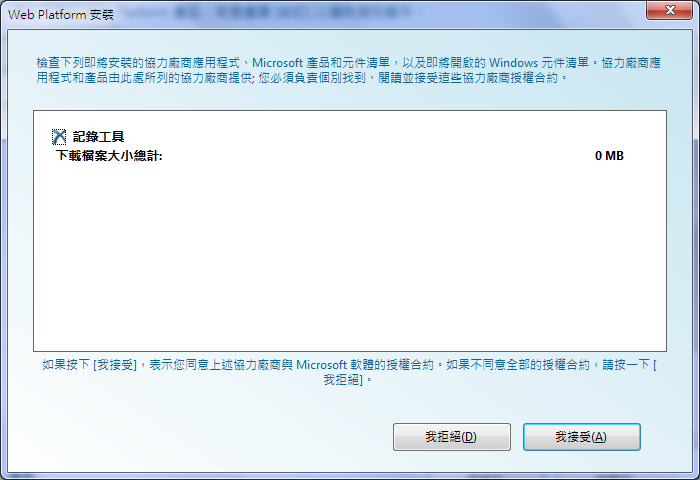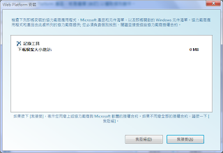 可從 http://www.microsoft.com/web/downloads/platform.aspx 下載安裝程式,執行後會依據電腦下載真正的WebPI安裝程式。