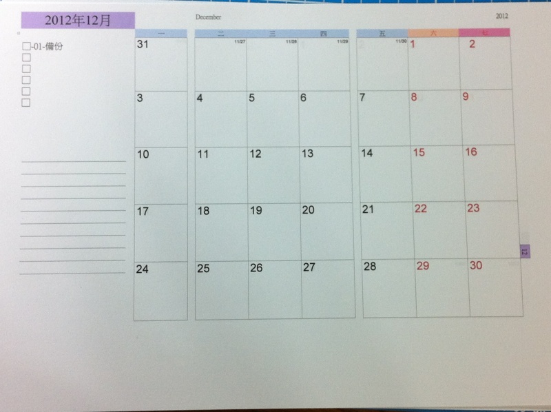 弄了好幾晚,有關 Month Plan 這部分終於可以印出,裁邊,完成,就只差打孔了。