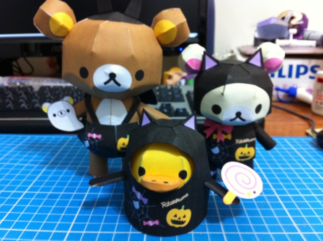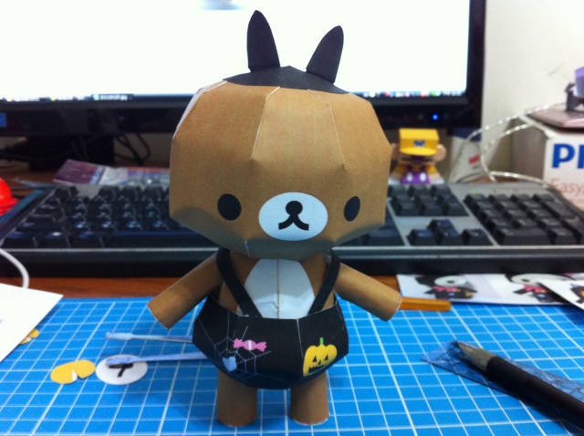 Dear my friends, Happy Halloween.一樣圖紙6張,就能完成懶懶熊x1 、 懶熊妹x1 和 小黃鳥x1,製作難度很低,唯一要注意就是各零件沒有黏貼邊,需要自己加工一下。小黃鳥製作過程: 懶熊妹製作過程: 懶懶熊製作過程: