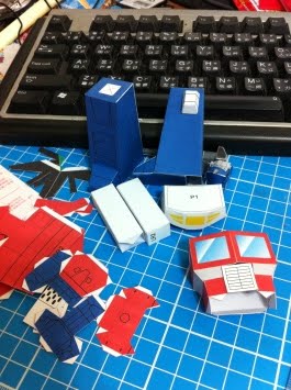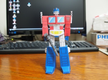兩隻作品都蠻容易完成的,但不代表零件就會比較少,紙箱型科博文,是我切好,然後讓小孩去黏貼,我在從旁幫忙完成的。