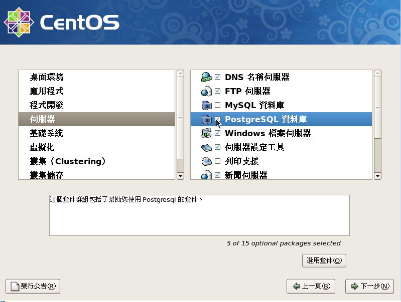 更近一步選取各套件,按『下一步』後,此時安裝程序會檢查個套件的相依性,沒問題會進入下一個安裝程序。