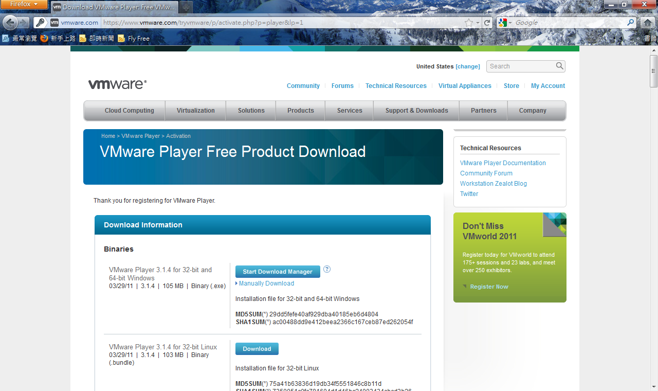 1. 執行下載回來的VMware-player-3.x.x-xxx.exe,按"Next"進入下一個步驟