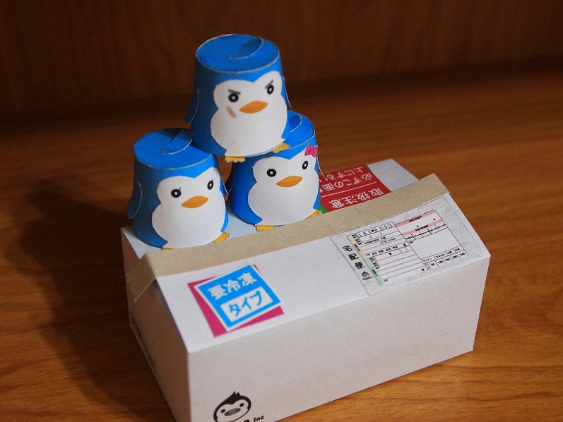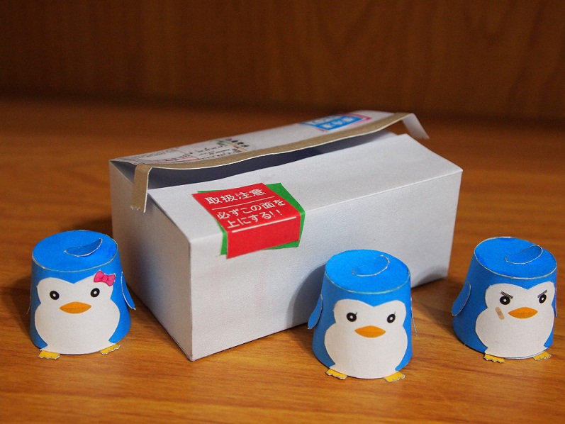 創作者設計的好小巧,該有的都有了,紙箱上那些宅配單子真的很清楚,三隻企鵝非常的Q。