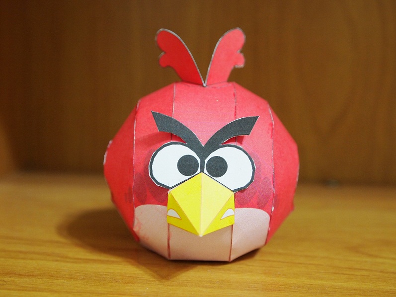 圖紙1張,完成約高7.5公分,近年最夯的遊戲,造成到處都是憤怒鳥,雖然滿好完成的,但要完整弄出個球形也不是那麼容易,在做的時候,小孩高興的在旁邊等,只希望趕快完成。 沒綠皮豬,先大戰武士豬。只是沒想到隔天早上就慘遭大兒子毒手,變成下面那模樣了...
