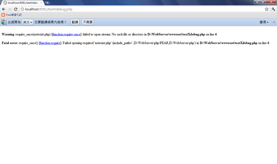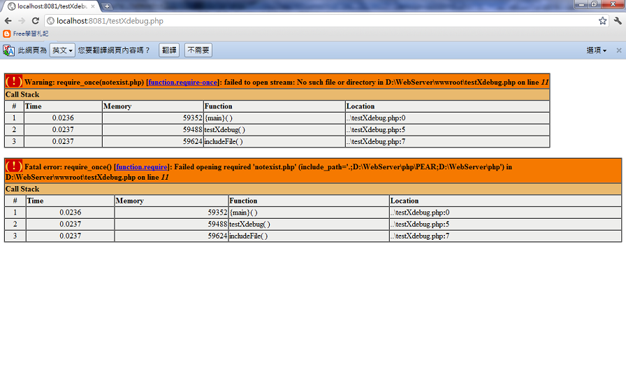 xdebug顯示就像JAVA Exception追蹤回溯一樣,可以一步步快速正確定位到錯誤位置來快速解決問題。