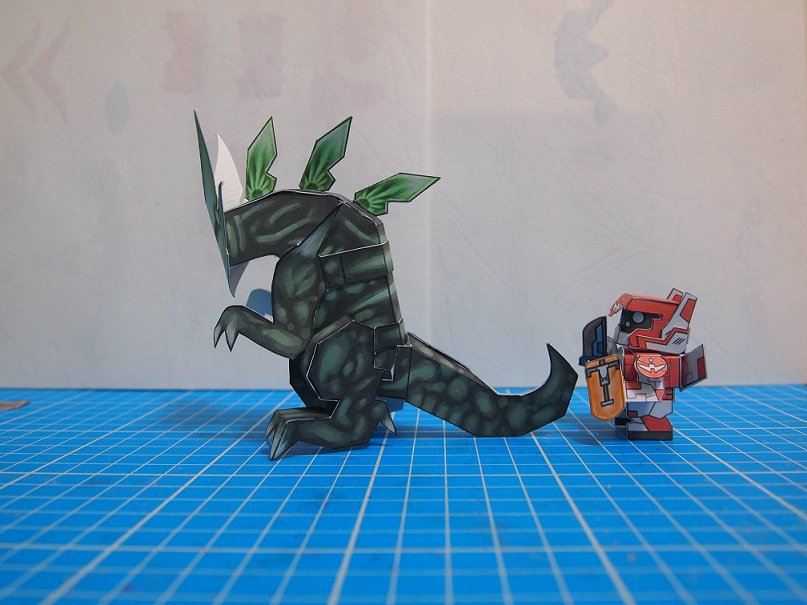 有時不需要太精緻的模,卻可以帶來極大化的樂趣,一看到這紙模時,我第一個念頭就想到勇者鬥惡龍,沒辦法這遊戲實在太經典了。做紙模最大的樂趣,就是小孩在旁邊繞著,眼裡充滿期待的眼神。這些一完成時,小兒子已經去把相機拿來,還不停幫它們擺不同姿勢來讓我拍照。