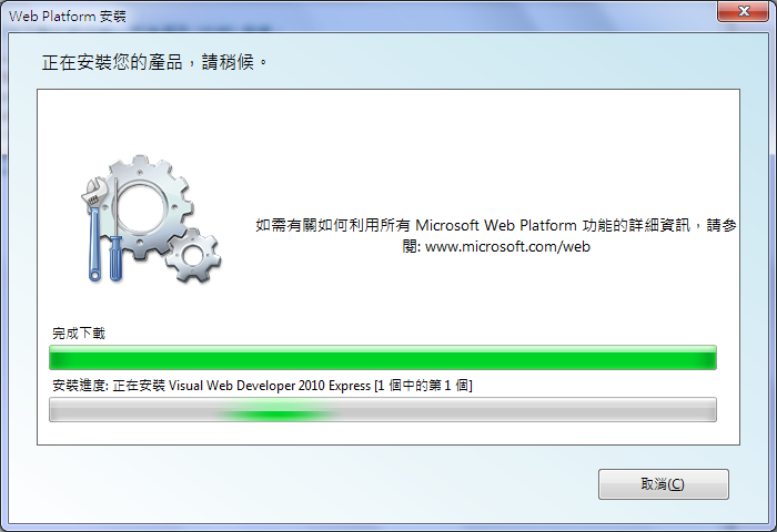 以第二種方式順利安裝了 Visual C# Express 2010及 Visual C++ Express 2010後,再要安裝Visual Web Developer 2010 Express時,網頁上卻提醒要先安裝Microsoft Web Platform Installer (WebPI),這是什麼,記得以前不用的,果然曬網太久了,資訊還真的跟不上,@@