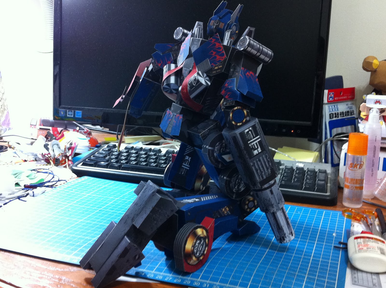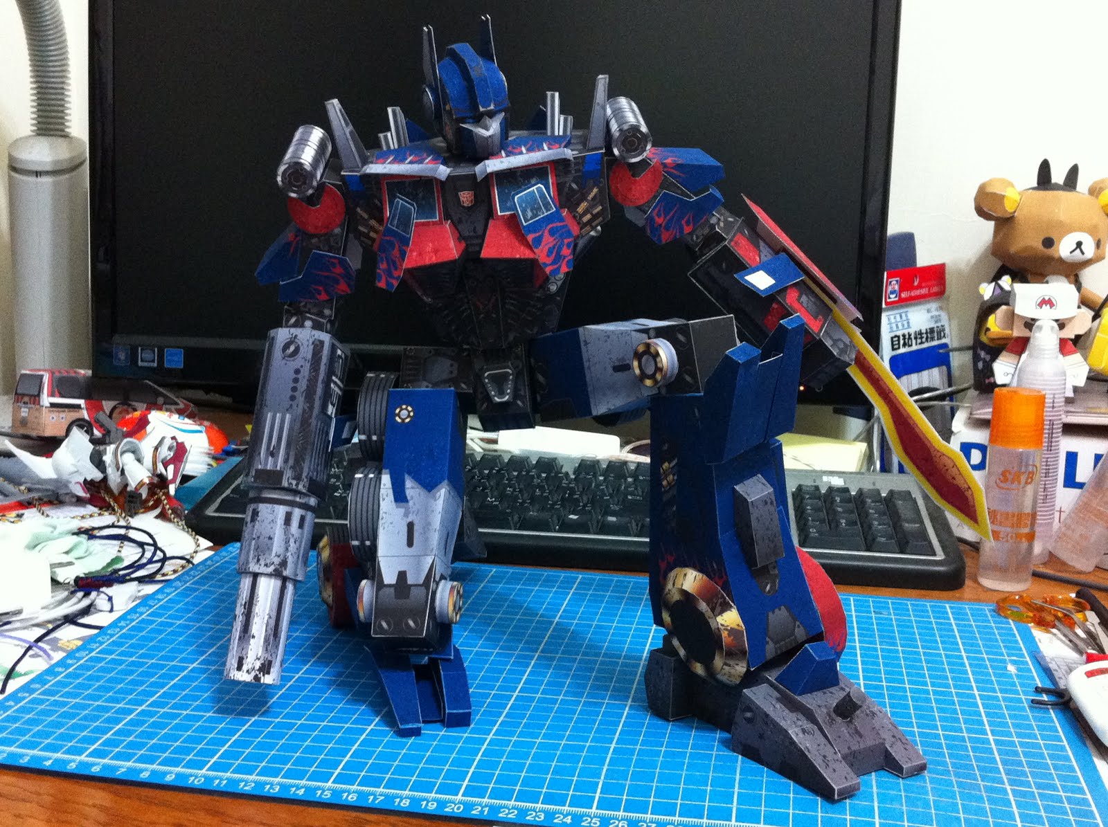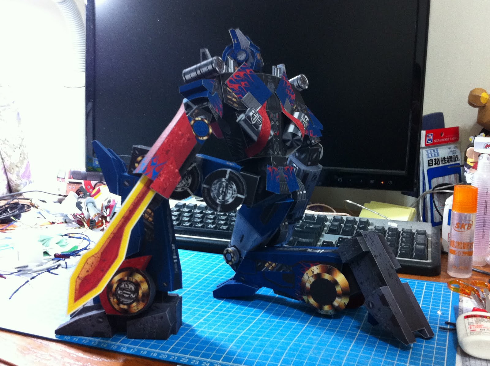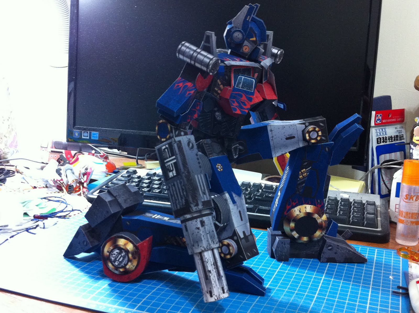 終於完成了,高32公分,好多零件好大,光要讓這些大零件不會太容易凹進去,就花了我好多時間,果然紙模太大或太小都不容易完成。