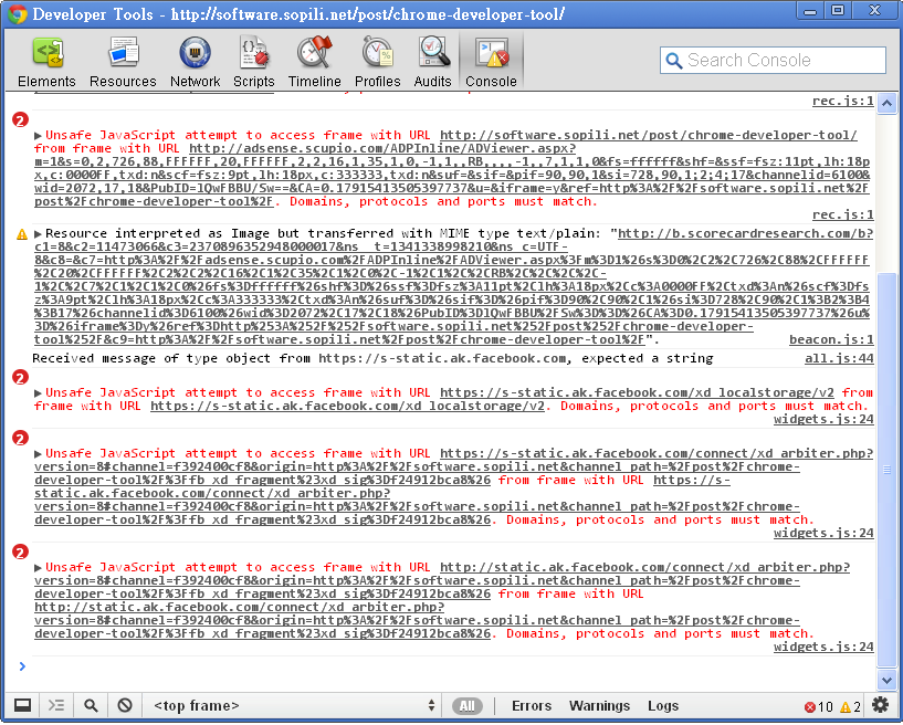 3. Console 頁面,可以檢查錯誤訊息。
