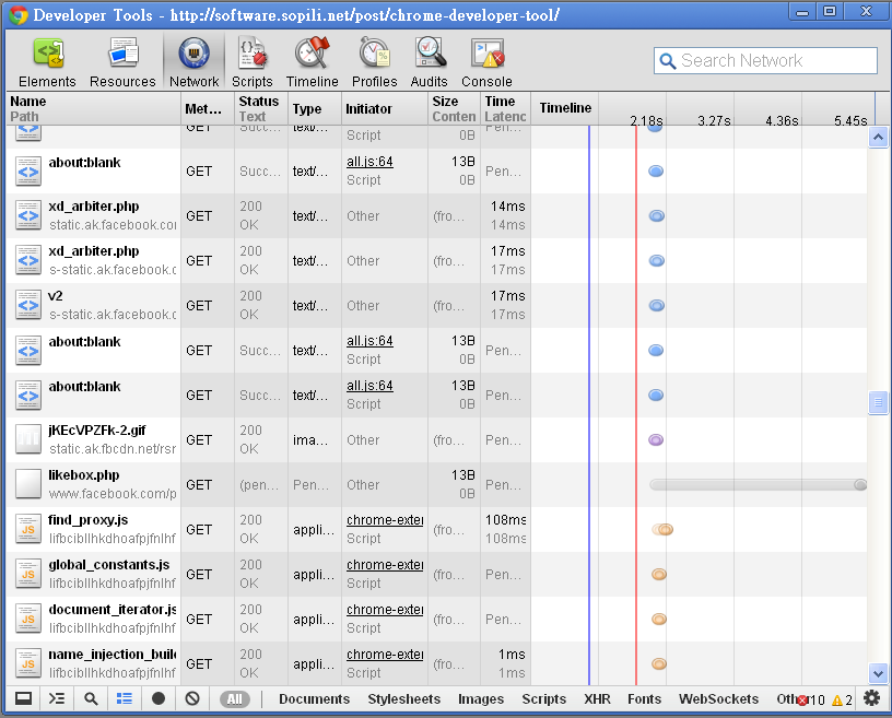 2. Network 頁面,可以看到網頁各項的執行時間。