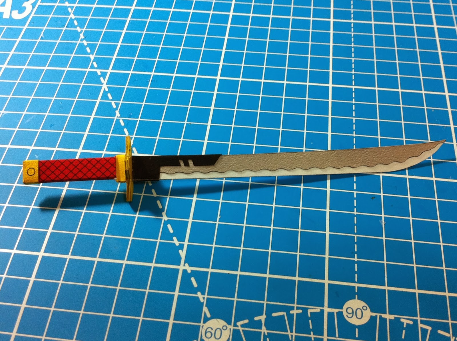 原本的武器有兩把,做得太順手,沒拍過程,成品也只拍了一支,最後一把長刀,要先把完成品的圖傳給設計者就會拿到。