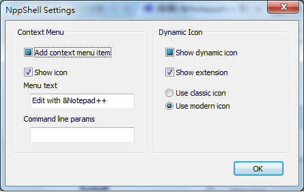 請確認勾選[Add context menu item],也可以在[Menu text]輸入自己喜歡的說明,最後按[OK]即可完成設定。