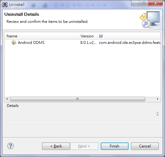 確認沒問題,點擊 Finish ,就會開始移除 plugin