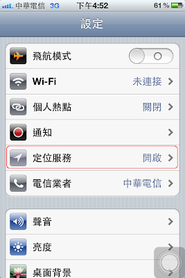 1. 『設定』 -> 『定位服務。